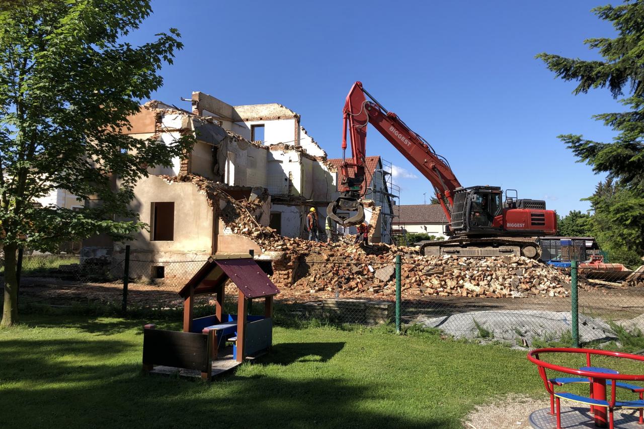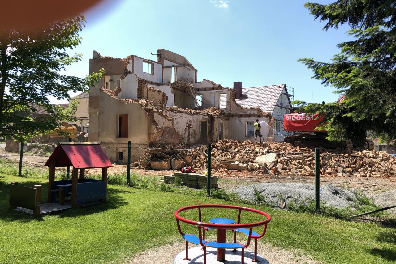 Demolice budovy bývalého úřadu Meclov...